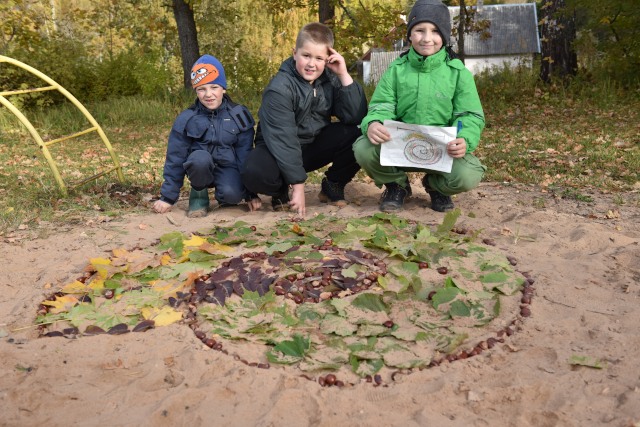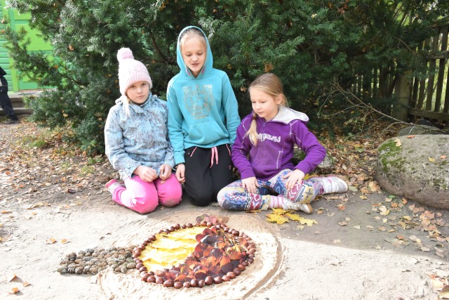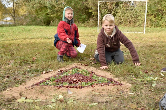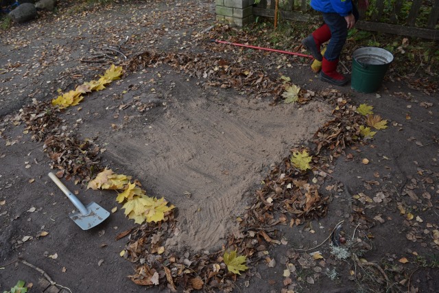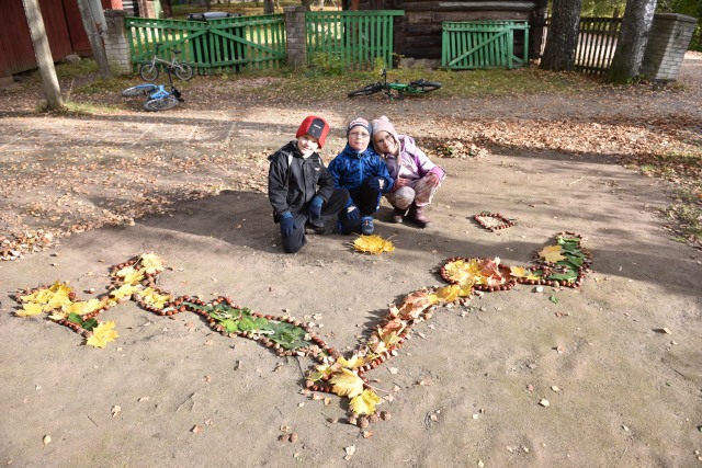 Töö jaoks tuli sobiv koht leida ja see puhastada ning siis kavandi järgi sättima hakata. Heliis oli ainuke, kes tahtis üksinda oma kunstitööd teha